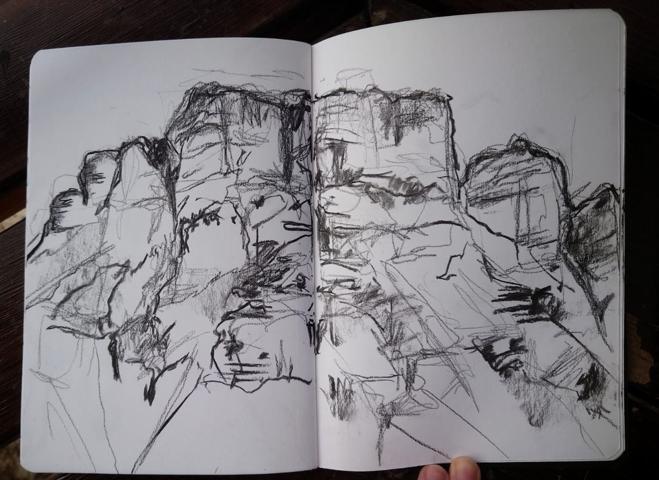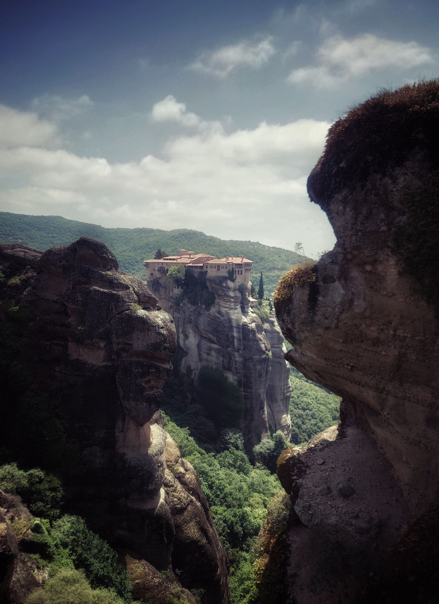 With no clue what to do but with a vague idea to stay North and head East we went from nature at its finest to man-made creations of astonishing beauty at Meteora.  These monasteries, and a nunnery, have to be seen to be believed.  The morning began with threatening skies and wonderful photographic conditions that soon descended into a bright hazy heat that was no good for me but Kerry put to good use with a few sketches.