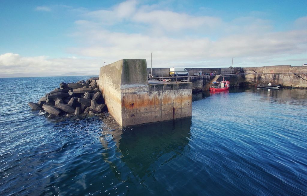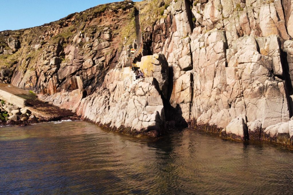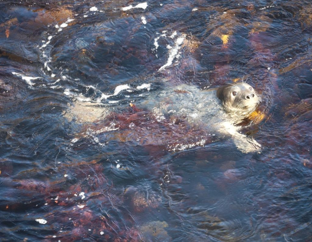 I’d scrambled down a cliff on a hazardous set of steps where I spent 15 minutes snapping shots, first with my camera and then finally with the drone.  While Kerry manhandled Chloe away from a dead seal on the slipway I had to contend with the live one with an urge to be photographed.