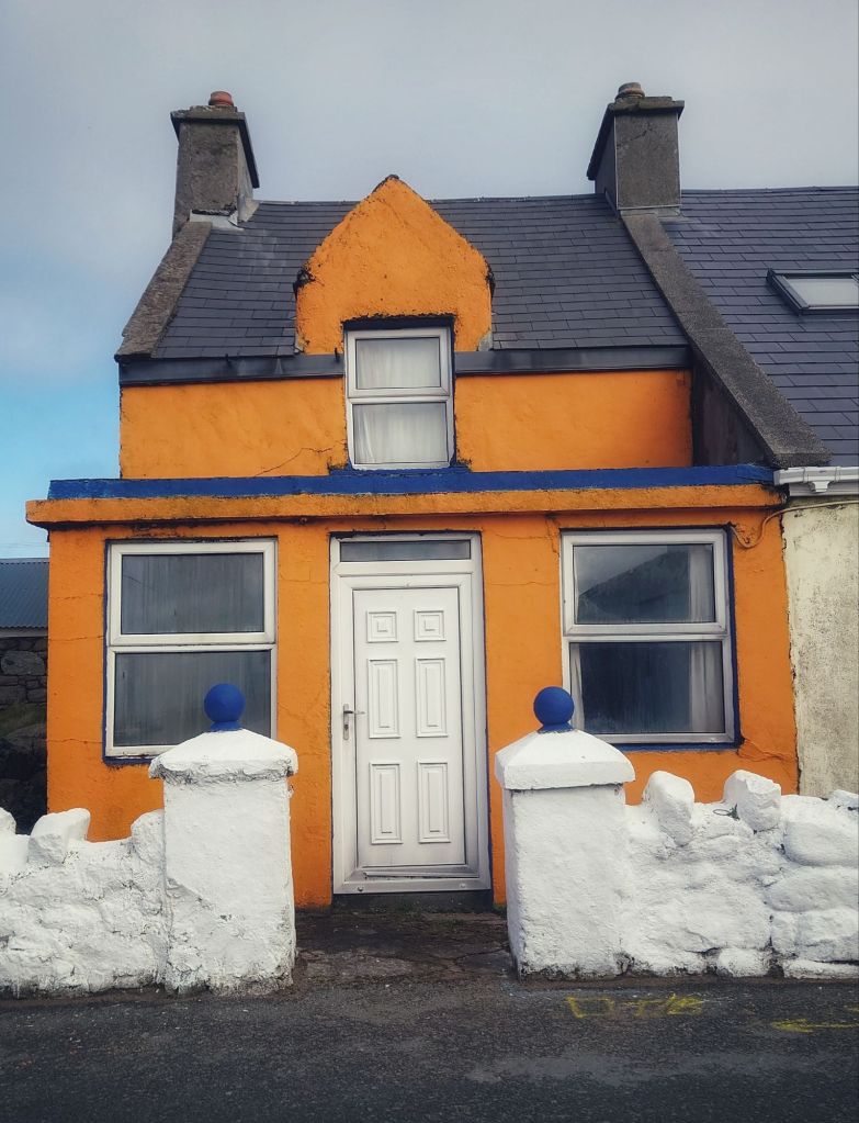 Tory Island is the most remote inhabited island in Ireland, has a permanent population of about 150 Gaelic speakers.  It is stark, beautiful and the backdrop of the mountainous Donegal coast could be seen on the horizon from every part of the island.  I’d go back again, but only on a calm day because the ferry is barely bigger than a fishing boat and it was rocking on the crossing. On what was a very calm day.  Kerry’s sea sickness is notorious and her eyes were fixed on the horizon as she fought back the nausea.  Thankfully, no sick bags were required.   That could have something to do with the brandy and ginger ale some local ladies recommended to settle the stomach.