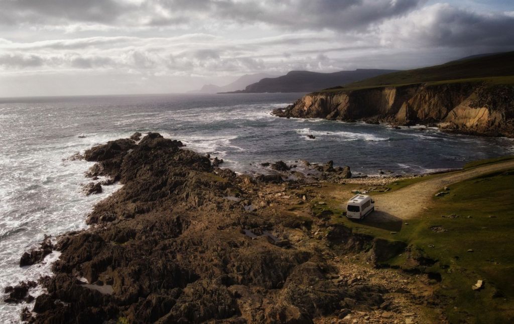 The weather was a bit colder the next day, and while it wasn’t beach weather, it was great for exploring and we spent that night wild camping on the most isolated rocky shoreline where phone reception was virtually non-existent. I expected to see a lot of nice things on this Ireland trip but the stark beauty of Achill Island was something else.