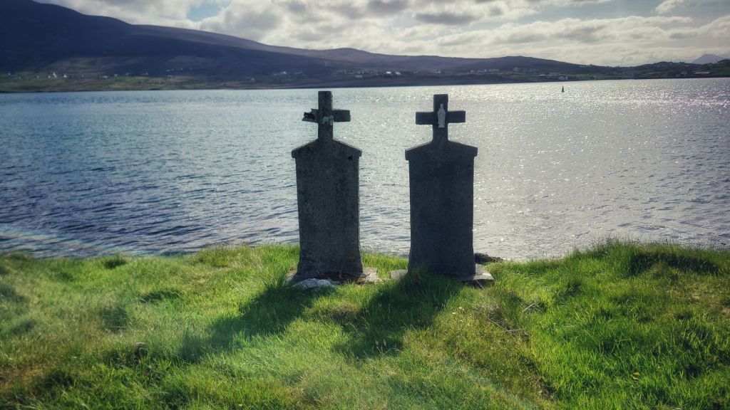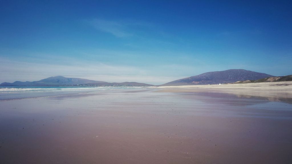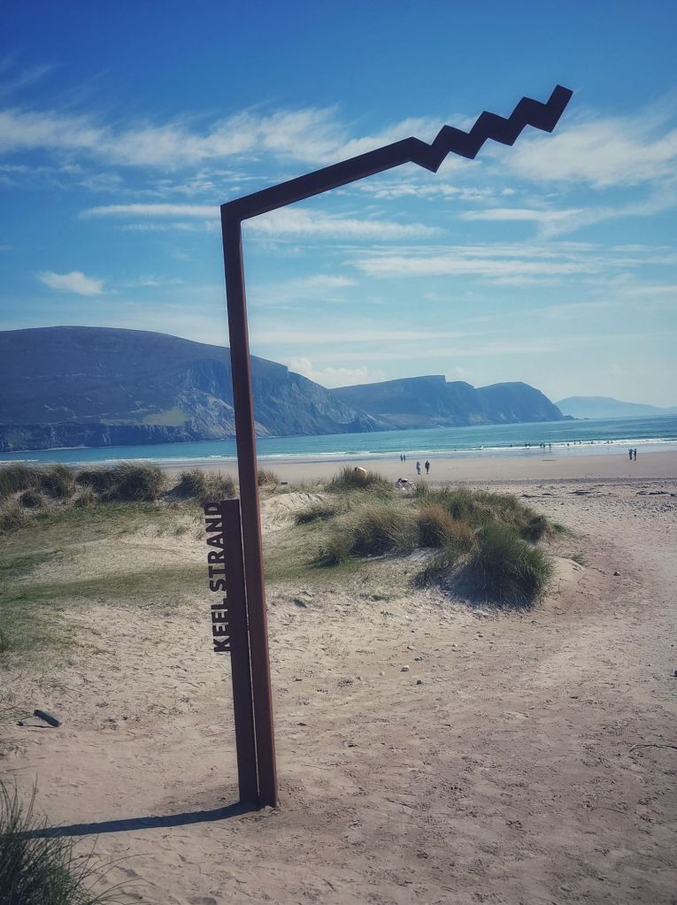 We rejoined the Wild Atlantic Way and spent the night at the Beach Bar at Aughris Head before heading west the next day. We’ve now clocked up our second Irish island and it was the deeply stunning Achill Island. In fairness to us we wanted to sit out the heatwave on a beach and we found a campsite at Keel, where the beach seems to stretch on to infinity, I whipped out the shorts and we spent the day lounging like it was a beach holiday. There was some sunburn as I explained earlier.
